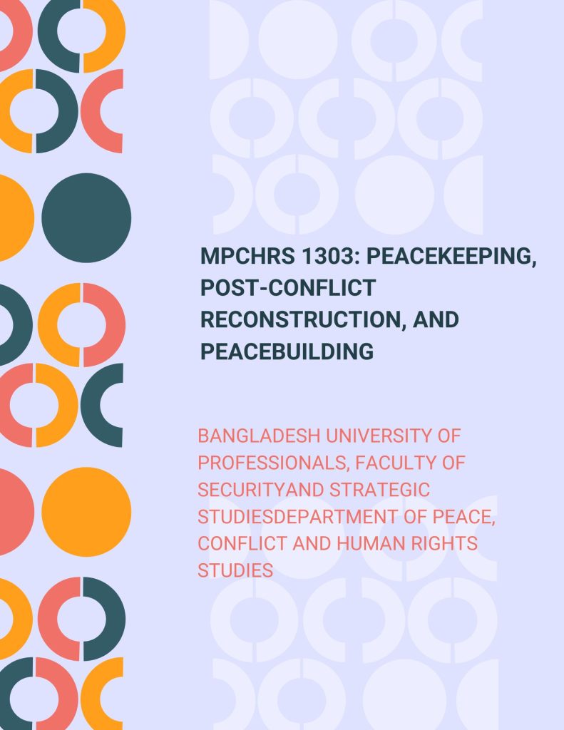 Master of Peace, Conflict and Human Rights Studies Program, MPCHRS 1303: Peacekeeping, Post-Conflict Reconstruction, and Peacebuilding